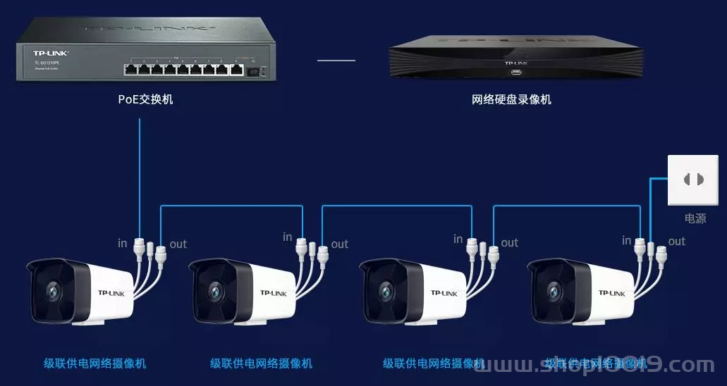 当然,如果你的摄像头比较多,还可以用DC供电混合组网,组建如下网络: