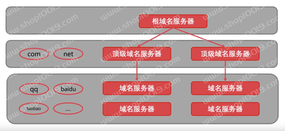 DNS(Domain Name System:域名系统)【C/S,UDP,端口53】:解决IP地址复杂难以记忆的问题,存储并完成自己所管辖范围内主机的 域名 到 IP 地址的映射。 域名解析的顺序: 【1】浏览器缓存, 【2】找本机的hosts文件, 【3】路由缓存, 【4】找DNS服务器(本地域名、顶级域名、根域名)->迭代解析、递归查询。 IP—>DNS服务—>便于记忆的域名 域名由点、字母和数字组成,分为顶级域(com,cn,net,gov,org)、二级域(baidu,taobao,qq,alibaba)、三级域(www)(12-2-0852)