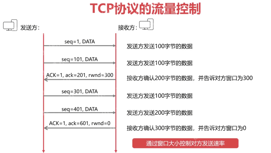 基于连续ARQ协议,在某些情况下,重传的效率并不高,会重复传输部分已经成功接收的字节。 5.3.2 TCP协议的流量控制